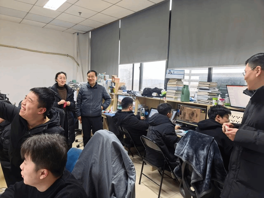 在检查实验室的同时,班子成员还对部分教师办公室和研究生自习室进行检查,看望工作岗位上的教师,杨丽代表班子向过去一年辛勤付出的老师表示感谢,提醒大家在总结过去一年工作的同时,合理安排好休息与假期的科研和工作。在研究生自习室,班子成员与研究生就学业、科研等事项进行沟通交流,提醒同学们做好工作场所、宿舍规范用电,同时注意往返家校时的交通安全与人身安全。