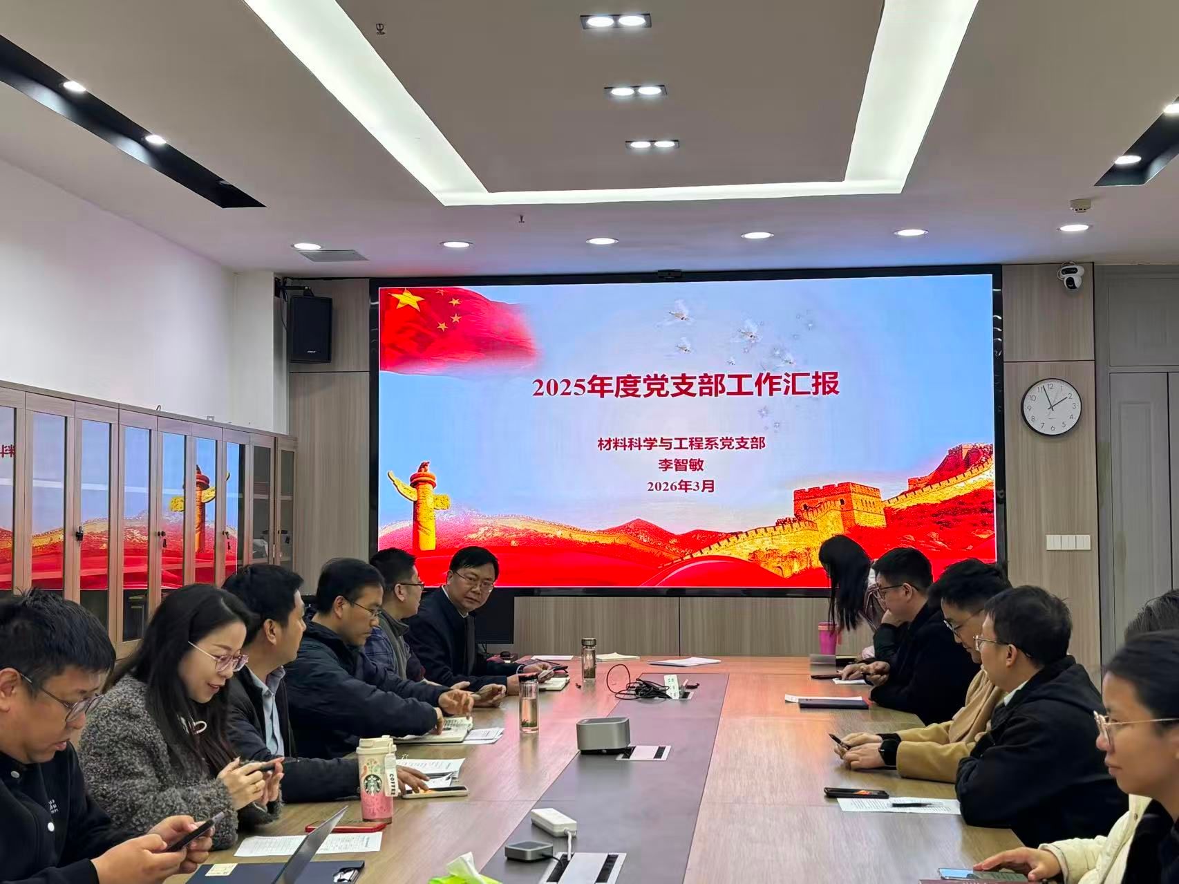 材料科学与工程系党支部在长安校区G142召开党员大会,开展民主评议党员,专题研讨树立和践行正确政绩观学习教育。支部联系人宋刚锋到会指导,支部20余名党员参加会议,党支部书记李智敏主持。