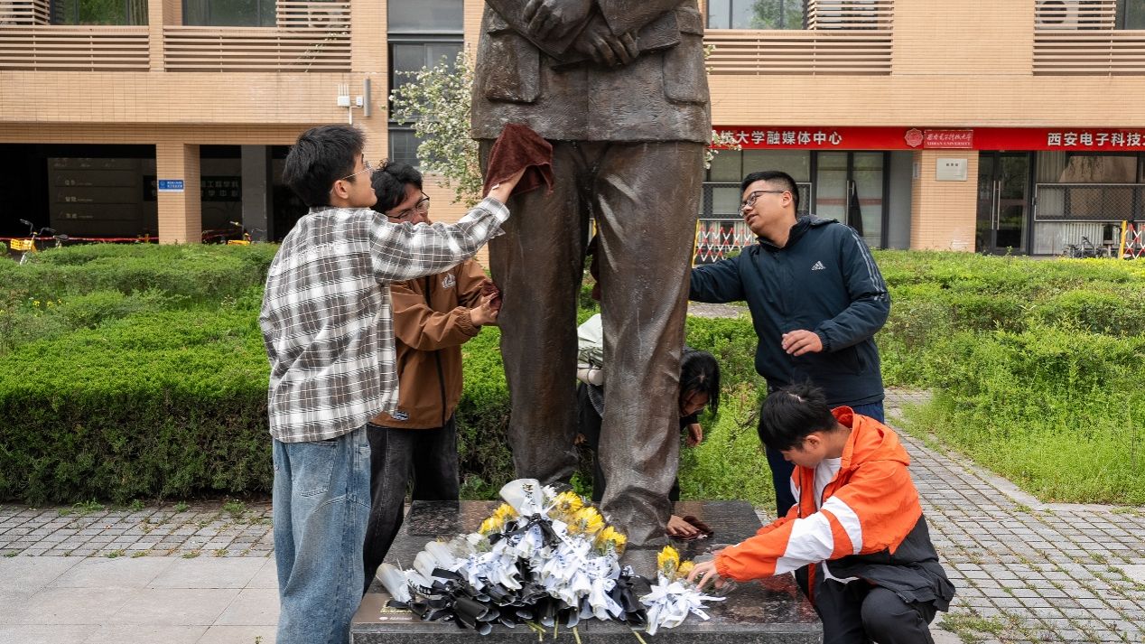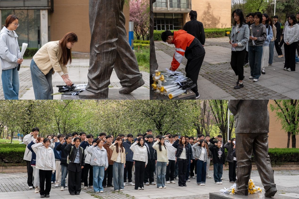 团委联合电子工程学院团委组织50余名学子前往长安校区毕德显雕像处开展清明祭扫。